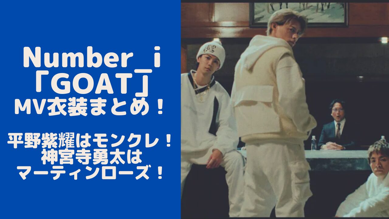 Number_i「GOAT」MV衣装まとめ!平野紫耀はモンクレ!神宮寺勇太はマーティンローズ!Number_iのデジタル1stシングル「GOAT」のMVが2023年1月1日00:00に公開されます。 平野紫耀さん、神宮寺勇太さん、岸優太さんのメンバー3人のMV衣装を早速チェックしてみました! 詳しくみていきましょう! Number_i「GOAT」MV衣装まとめ! 引用:Number_...